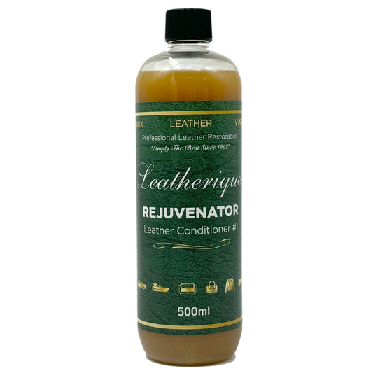 Begin with Leatherique Rejuvenator; specially formulated to replenish lost natural oils and moisturize your leather. This step conditions the leather, restoring its suppleness.